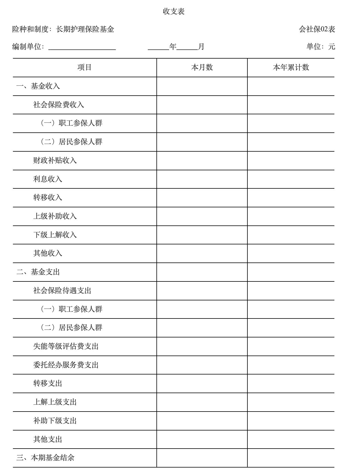 (三)明确长护险基金“收支表”的报表格式和编制要求,以及城乡居民医保基金中“大病保险支出”项目的列示要求。