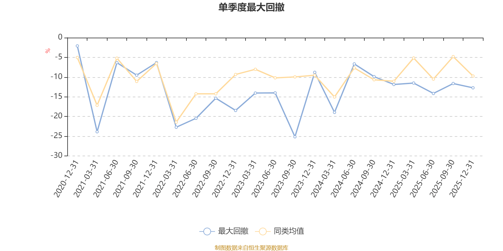 截至1月15日,基金近三年最大回撤为44.44%,同类可比基金排名51/57。单季度最大回撤出现在2023年三季度,为25.18%。