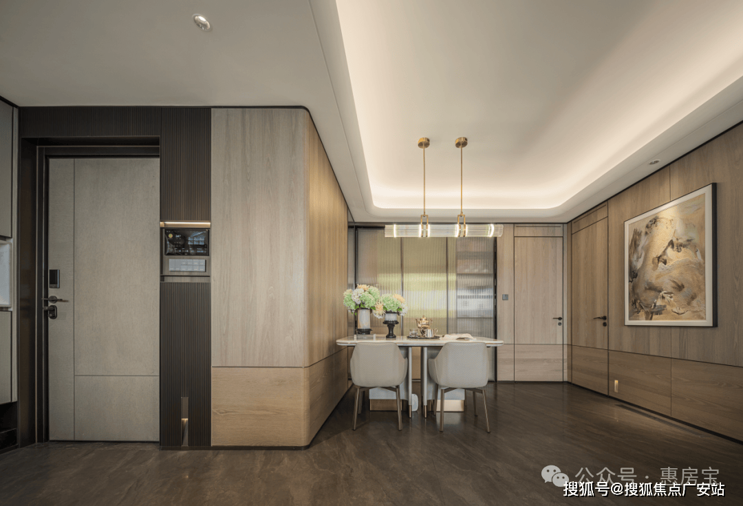 与常规新房室内没有门与墙的生硬拼凑感不同,江湾金茂府通过大量木饰面、隐藏门等细节,形成统一的设计语言,色彩与材质搭配协调统一,尽显整体美感!