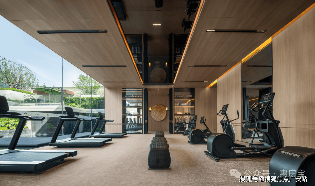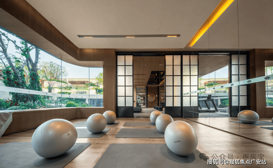 精妙之处在于,下沉会所采用围合式布局,健身房、瑜伽室等空间得以直面美景。