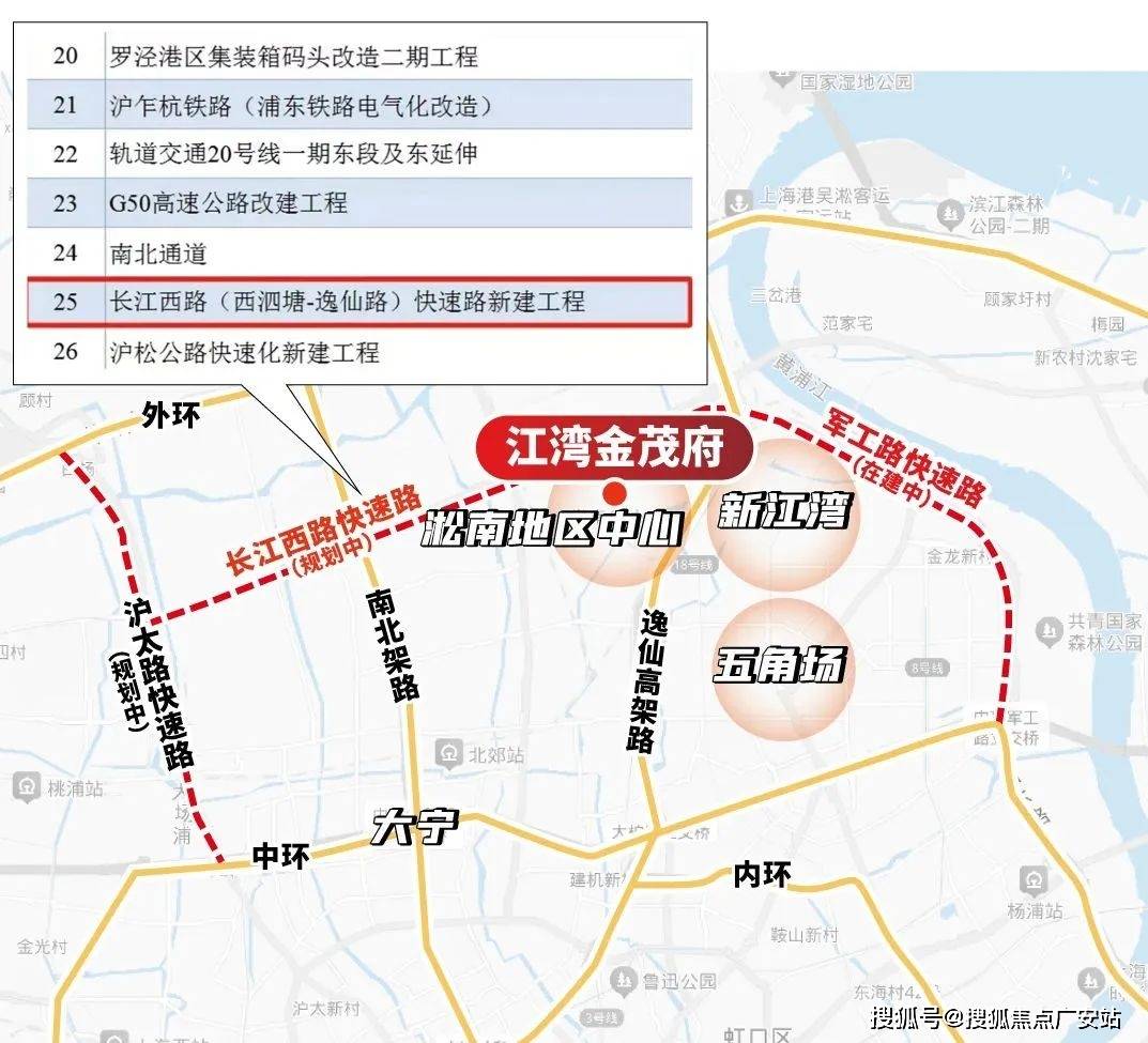 其中,军工路快速路新建工程预计今年年内完工,意味中环北抬今年将迈出重要一步,而长江西路快速路已被列入2025年上海市重大工程清单,预计即将开工。