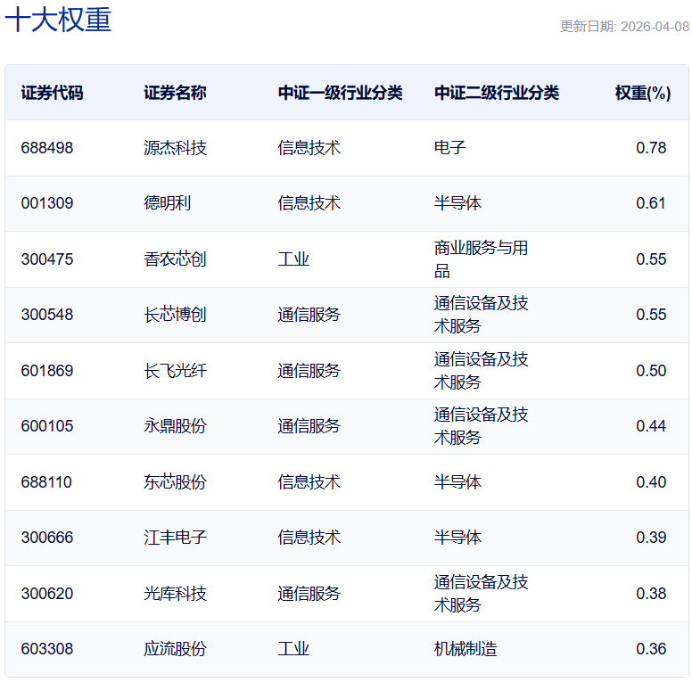 来源:中证指数公司官网,截至2026/4/8。注:成分股仅作为展示,不作为个股推荐。