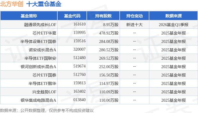 持有北方华创最多的基金为融通领先成长LOF,目前规模为14.23亿元,最新净值1.961(4月17日),较上一交易日上涨0.98%,近一年上涨60.61%。该基金现任基金经理为何龙。
