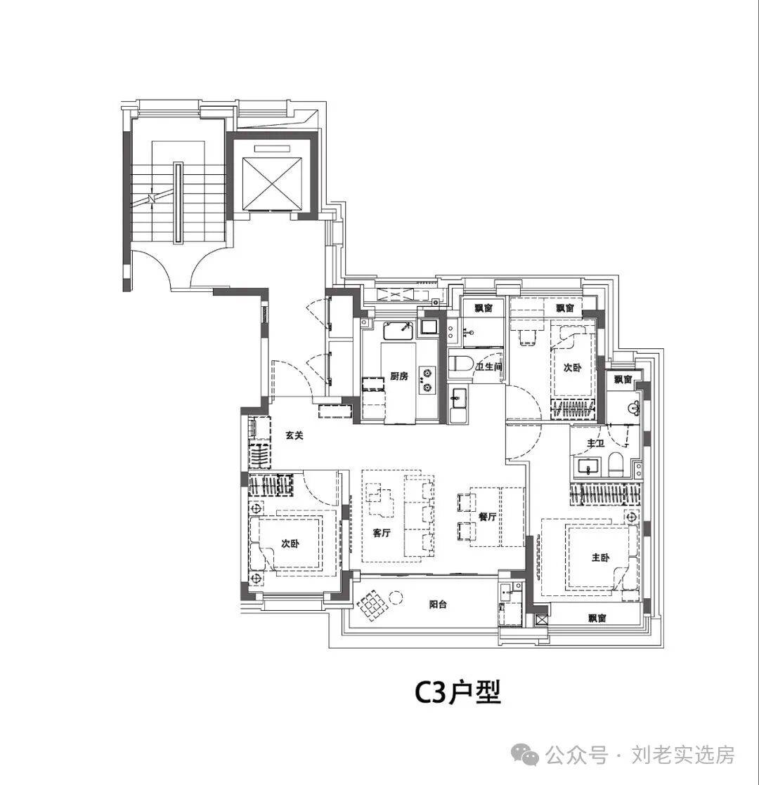 尤其你看项目建面约102㎡的C3户型,格局上超越了传统意义的三开间朝南,客厅面宽高达约5米外接差不多尺度的阳台,线开间,让业主起居之间沐浴更多阳光的同时,公区尺度感也直逼其他项目建面约100-120㎡户型。