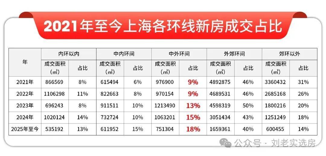 据网上房地产成交数据显示,中外环间成交占比从2021年的9%提升至2025年的19%,增幅高达10个百分点,位居各环线之首!