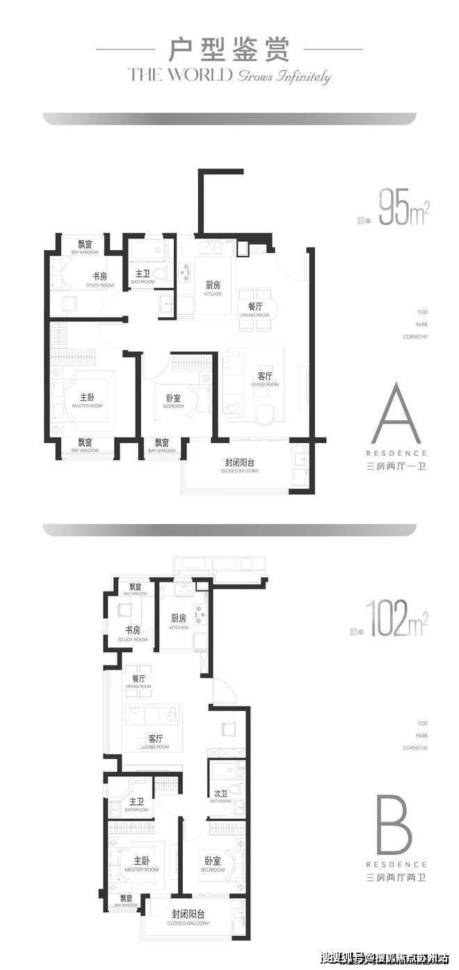 主力户型:建筑面积约 95-143㎡的 3-4 房,包括 95㎡、102㎡、104㎡、143㎡等多种户型。