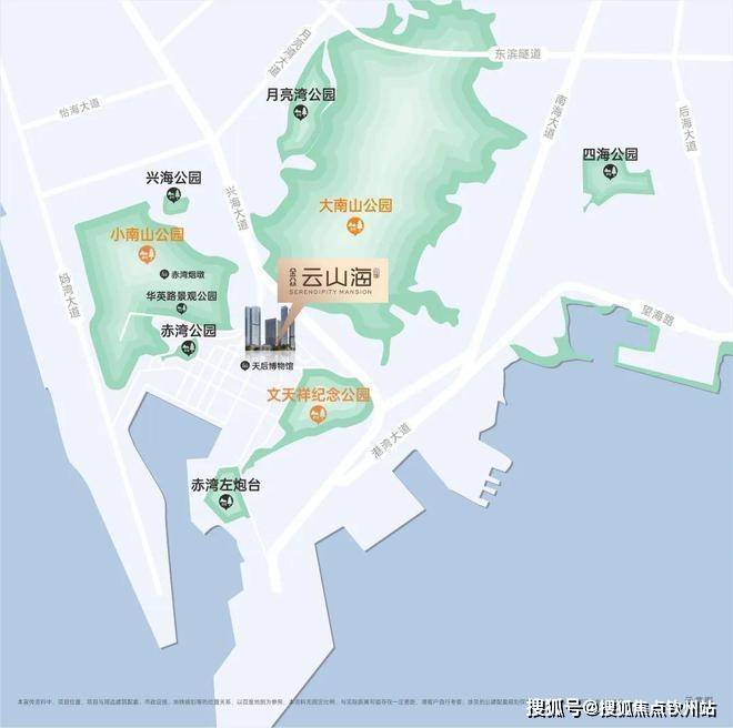 七园为邻:约2公里范围内,有大南山公园、小南山公园、文天祥纪念公园、华英路景观公园、赤湾公园、兴海公园、月亮湾公园等公园环伺