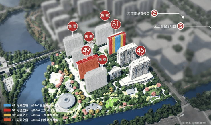 产品品质:主力户型为建面约93-143㎡精装3-4房,得房率约80%-83%,配备日立中央空调、全屋地暖、新风系统等高端配置,部分楼宇已达准现房状态,品质可见.