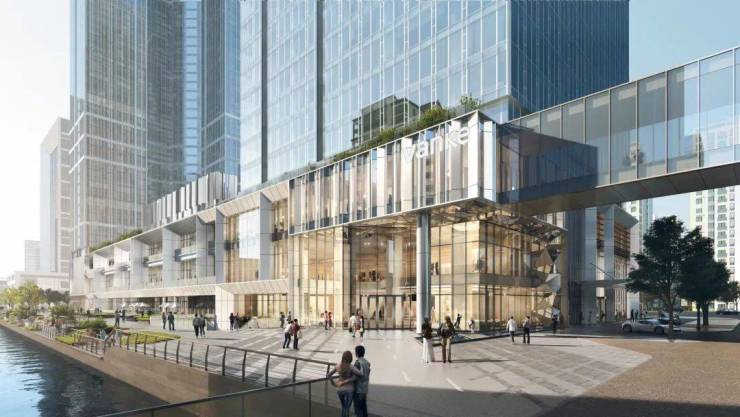三座塔楼以植物为核心设计元素,楼栋之间形成一整片绿域,将商业水岸、花园水岸、临街活力区和屋顶花园融入建筑,打造摩天大厦中的垂直花园。